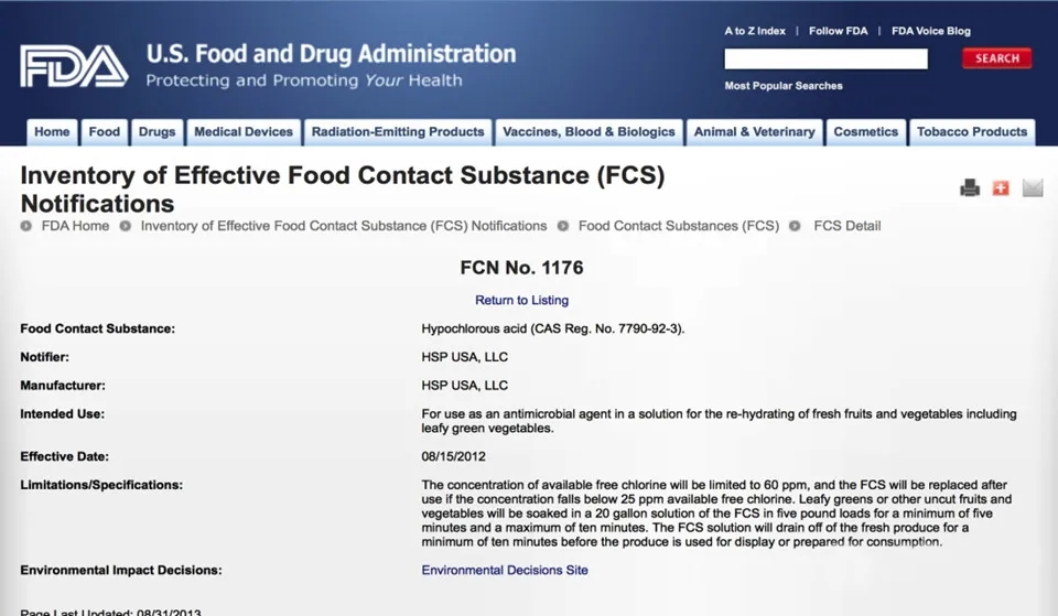美國針對次氯酸也做了很多研究和認證,美國食品藥物管理局FDA核準次氯酸可作為: